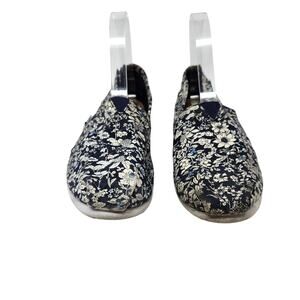 Toms Floral Print Slip On Loafer Canvas Flat Casual Shoes Blue White Size 8M