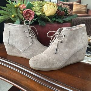 Toms Genuine Suede Desert Wedge Ankle Bootie Neutral Lace Up Rounded Toe Boots.