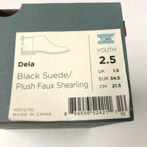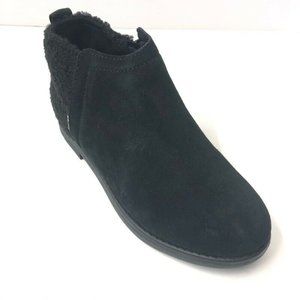 Toms Girl's Deia Ankle Booties Black Plush Faux Shearling Suede Side Zip 2.5 New