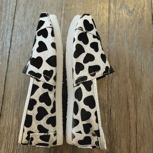 excellent, like-new condition adorable and fashionable silver Glitter ballet flat shoes with allover black hearts size 12