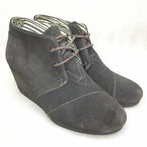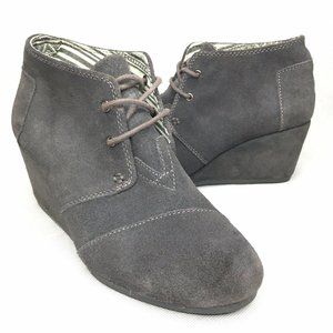 Stylish gray ankle boots by Toms. Features a wedge heel and lace-up design. Perfect for casual wear.