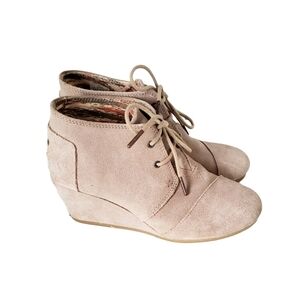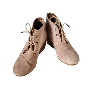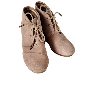 Toms Gray Wedge Lace Up Suede Shoes Size 8