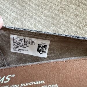 Experience everyday comfort with Toms flats, featuring a classic silhouette in a stylish gray and blue color scheme. These slip-on shoes boast a rounded toe and a textured fabric-like material, making them perfect for casual outings. Enjoy the simplicity and elegance of these versatile flats.