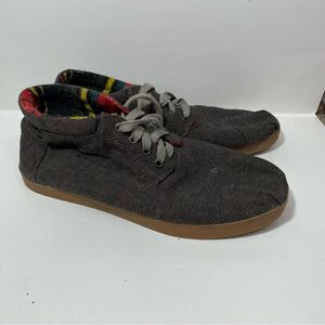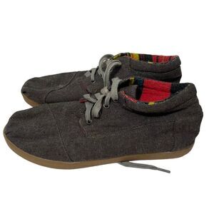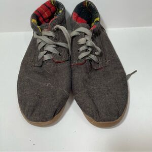 Gently worn men’s size 10.5 toms grey fabric grey sneakers. Please review all photos for any signs of wear-pictured as is. Disclaimer: Any items with any wear/staining has not been treated, and unsure of ability to remove/treat condition. Comes from a smoke free home, bundle with other items to save & minimize shipping cost.