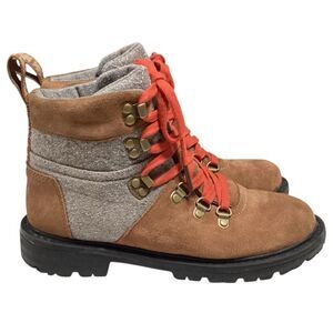 Toms Hiking Boots Womens 7 Gray Brown Summit Suede Wool Waterproof Lace Up Shoes