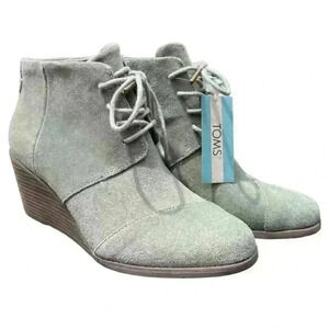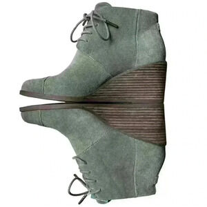 Toms Hyde Wedge Sneakers Ankle Bootie Vetiver Grey Sage Green Suede size 7.5