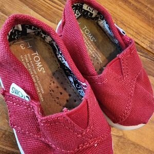 Toms Infant Classics Red Canvas Shoes Toddler Size T 3 Unisex Toddler EUC