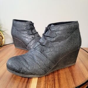 Toms Kala Black Sparkle Lace Up Wedge Booties Size 8
