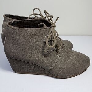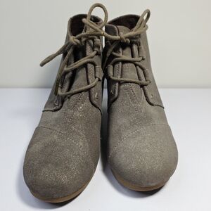 Toms Kala Wedge Heel Gray/Gold Glitter Round Toe Ankle Booties Women's Size 10