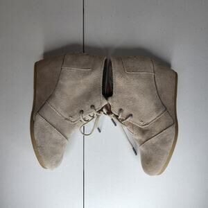 Toms Kala wedge suede taupe, lace-up, size 7 booties.