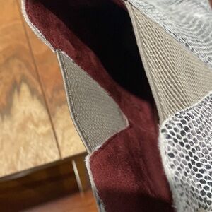 Elevate your style with these stunning TOMS Cobblestone Snake Print Suede Wedges. These pre-owned wedges are in excellent condition, having been rarely worn. They feature a chic snake print on suede and leather upper, adding a fashionable edge to any outfit.