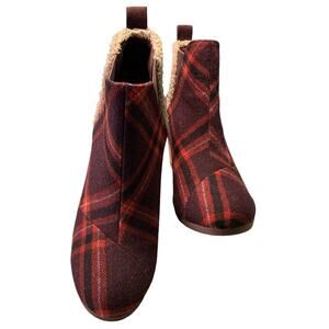 Toms Kelsey Women's Pump Wool Plaid Red Brown Wedge Bootie NEW w/o box Sz: 10W
