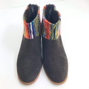 Toms LEILA Chocolate Suede Leather Colorful Textile Zip Back Heeled Ankle Boots
