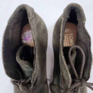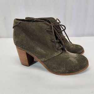 Toms LUNATA Women's Lace Up Booties Suede Olive Green Size 6.5