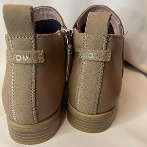 Women's Toms, Reese Boot. This versatile bootie is perfect for fall fashions! Pair this short boot style skinny jeans or leggings for a cute look . Suede leather uppersSide zipper closure for easy on and offEco friendly, OrthoLite Eco X40 insole offers cushion and is made from plant derived and recycled materialsThermoplastic rubber outsole with one inch low heel normal for wear please see pics Otherwisetures
