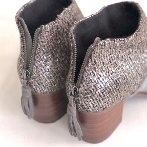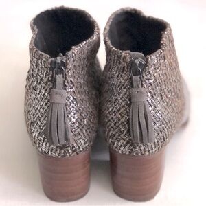 [ Toms] Leila Duo Grey Felt Shine Boucle Tassel Zip Block Heel Ankle Boots