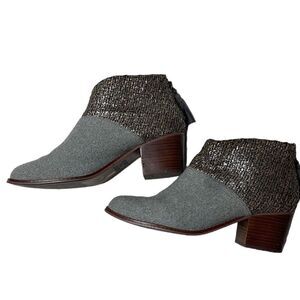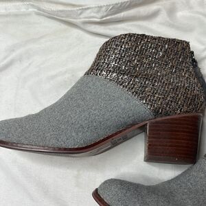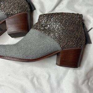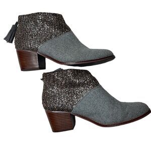 Toms Leila Grey And Silver Metallic Ankle Tweed Grey Wool booties. Size 7.5.