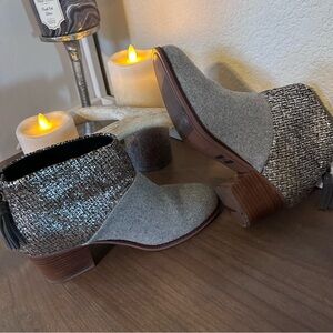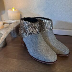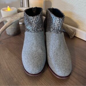 Toms Leila Wool Tweed Woven Metallic Gray and Silver Women's Ankle Boots 7.5W