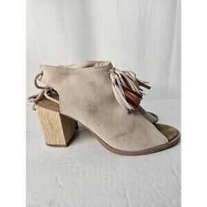 Toms Light Blush Pink Suede Tassel Block Heel Open Toe Booties 9