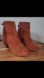 Beautiful cognac / rusty orangish brown patchwork pieced suede fringe bootie. Inside zip closure. 3" heel. Boho fringe on outer sides.