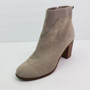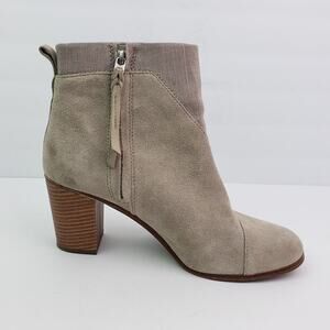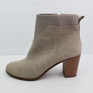 Toms Lunata Womens Size 10 Taupe Suede Zip Up 3" Heel Booties Boots