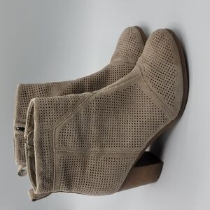 Toms Lunata bootie suede perforated boot size 8.5 desert taupe color