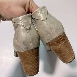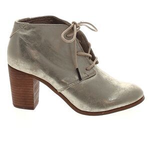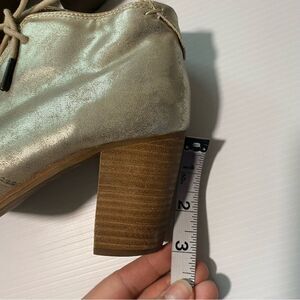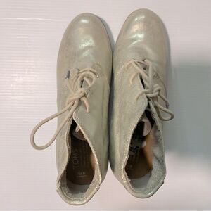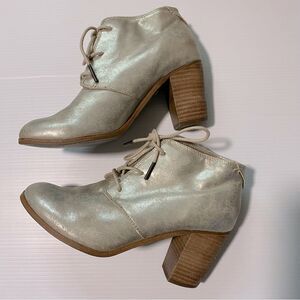 Toms Lunata Lace Up faux Leather gold metallic Booties block heel round toe 8