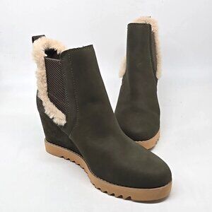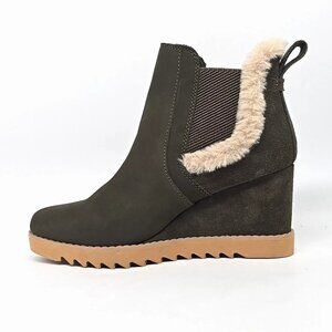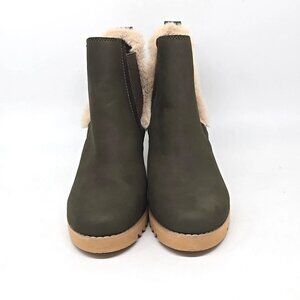 Toms Maddie Olive Leather Wedge Chelsea Boots Shoes Women's Size 8