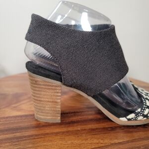 Toms Majorca Cut Out Sandals Size 8 Black Cream Boho Wood Block Heels