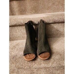 Toms "Majorca" Olive Green Faux Suede Peeptoe Booties Laser Cutouts Size 7.5