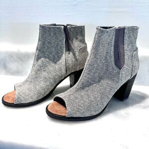 Toms Majorca Peep Toe Metallic Lined Gray Ankle Boots Size 7.5