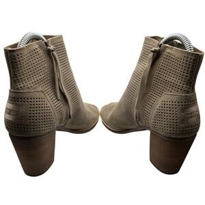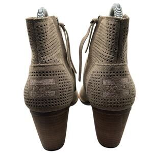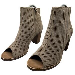 Toms Majorca Peep Toe Perf Suede Desert Taupe Diamond Mid-Calf Wedged Sandal, 7