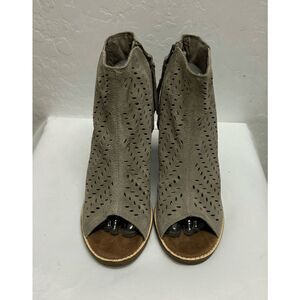 Toms Majorca Peep Toe Stucco Suede Perforated Bootie Side Zip Womens Size 8W