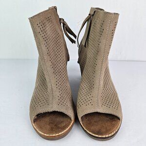 Toms Majorca Perforated Suede Peep Toe Boot Stucco (Tan) 7.5 10004963