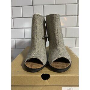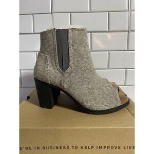 Toms Majorca Womens Peep Toe Zip Ankle Bootie Grey Metallic Linen Size 7.5M NIB. Never worn. Has shapers inside, stored in box. Great neutral color. Buy it now. Thanks in advance.