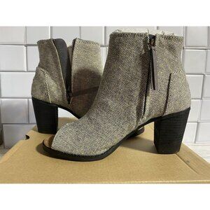 Toms Majorca Womens Peep Toe Zip Ankle Bootie Grey Metallic Linen Size 7.5M NIB