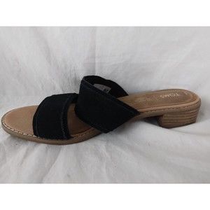 Toms Mariposa Sandals Black Suede Slip On 2 Strap Slide Shoes Womens Size 9