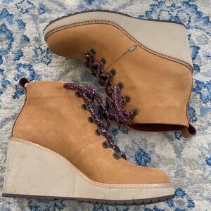 Excellent used condition with no major signs of wear. Lace up wedge booties.