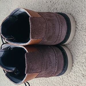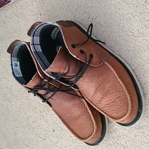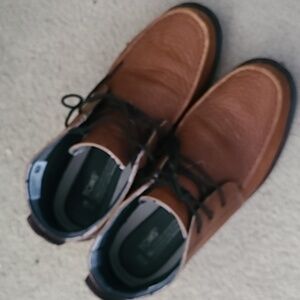 worn but in good condition. heavy boot. fits a little small, especially if wearing thick socks.