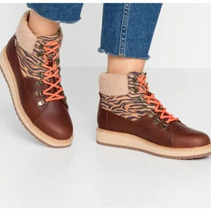Toms Mesa Boot Womens Size 6 Waterproof Zebra Nylon Faux Plush Animal