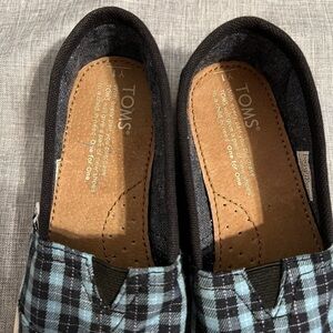 Toms Navy Blue Plaid Slip On Sneakers Y1. Good preowned condition.