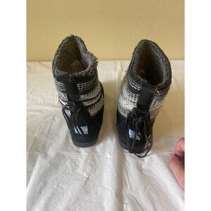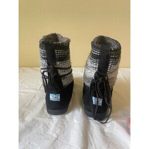 Toms Nepal Black Gray Boots Suede Leather Fleece Lined Sweater Stripe Size 6