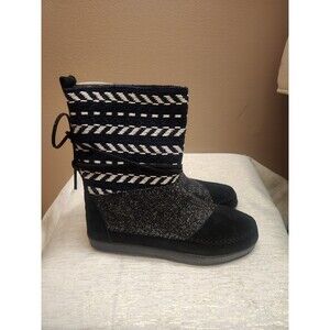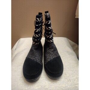Toms Nepal Black Suede Textile Mix Sweater Boots Black Blue White Size 8.5