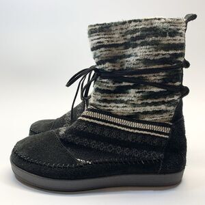 Toms Nepal Boots Womens 8.5 Black & White Suede/Fleece Lined Mid Calf Aztec