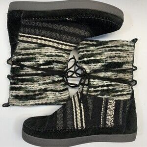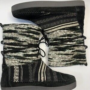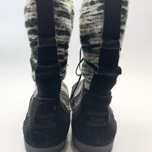Toms Nepal Boots Womens 8.5 Black & White Suede/Fleece Lined Mid Calf Aztec