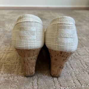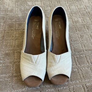 Toms Open Toe Cork Wedge Sandal Women’s 8 Beige Cream Summer Slip On Casual.