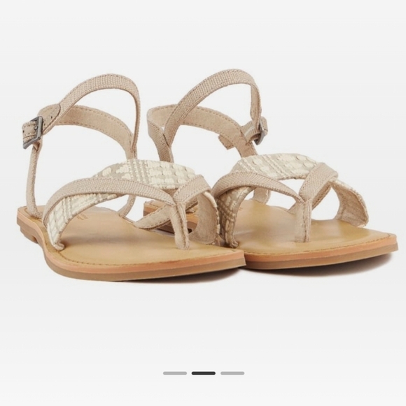 Toms Oxford Tan Heritage Canvas Lexie Sandals. Women's size 6.5. Preowned in good condition, minor wear. Welcome the new season and get ready for the sunshine, in the vegan Lexie Sandals from TOMS. There's something gladiator-like about these flat summer shoes with their Oxford tan heritage canvas upper in a laid-back strap design with toe post. Effortlessly easy-going with a good conscience.