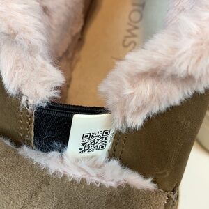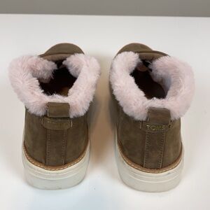 Toms Paxton slip on shoes. Color is Sable. Leather and faux fur