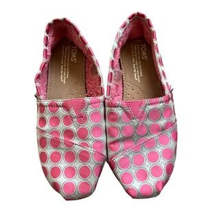 Toms Pink Polka Dot Fleece Lined Slip on Flat Shoes Youth Girls Size 3 EUC