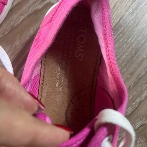 Step out in style with Toms Pink and White Canvas Sneakers, featuring a vibrant pink canvas upper and classic white laces. These low-top sneakers are designed for comfort and versatility, making them perfect for everyday wear. With a durable white rubber sole, they offer both style and functionality. Experience the blend of fashion and comfort with Toms' signature minimalist design.